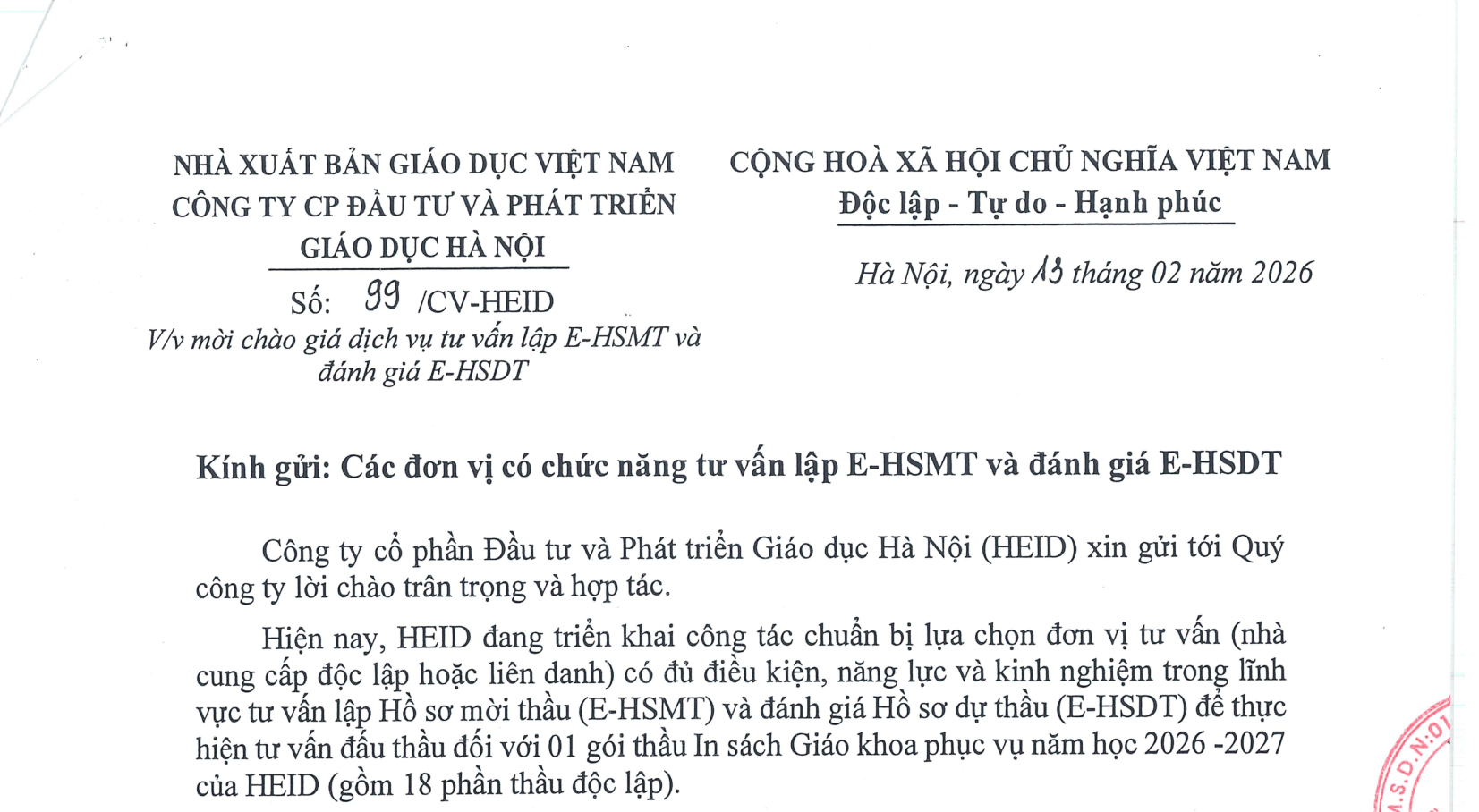 Hiện nay, HEID đang triển khai công tác chuẩn bị lựa chọn đơn vị tư vấn (nhà cung cấp độc lập hoặc liên danh) có đủ điều kiện, năng lực…