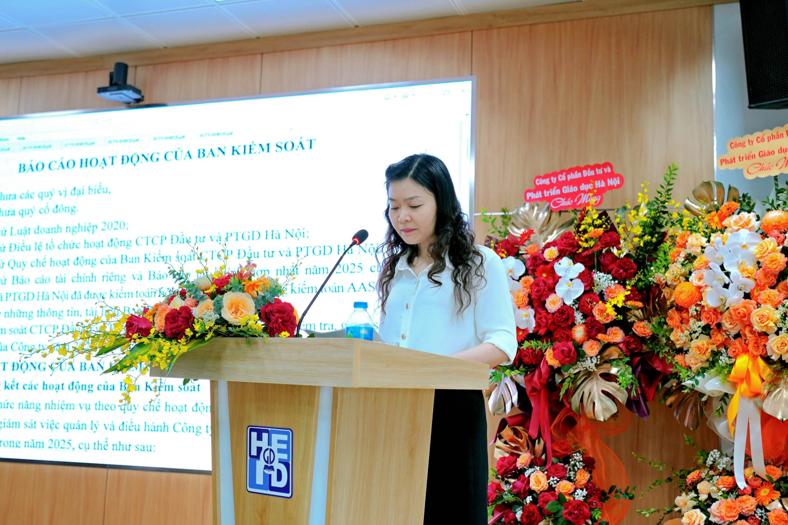 Bà Nguyễn Thị Thu Hồng – Trưởng ban Kiểm soát HEID báo cáo hoạt động của Ban Kiểm soát năm 2025 và kế hoạch năm 2026.
