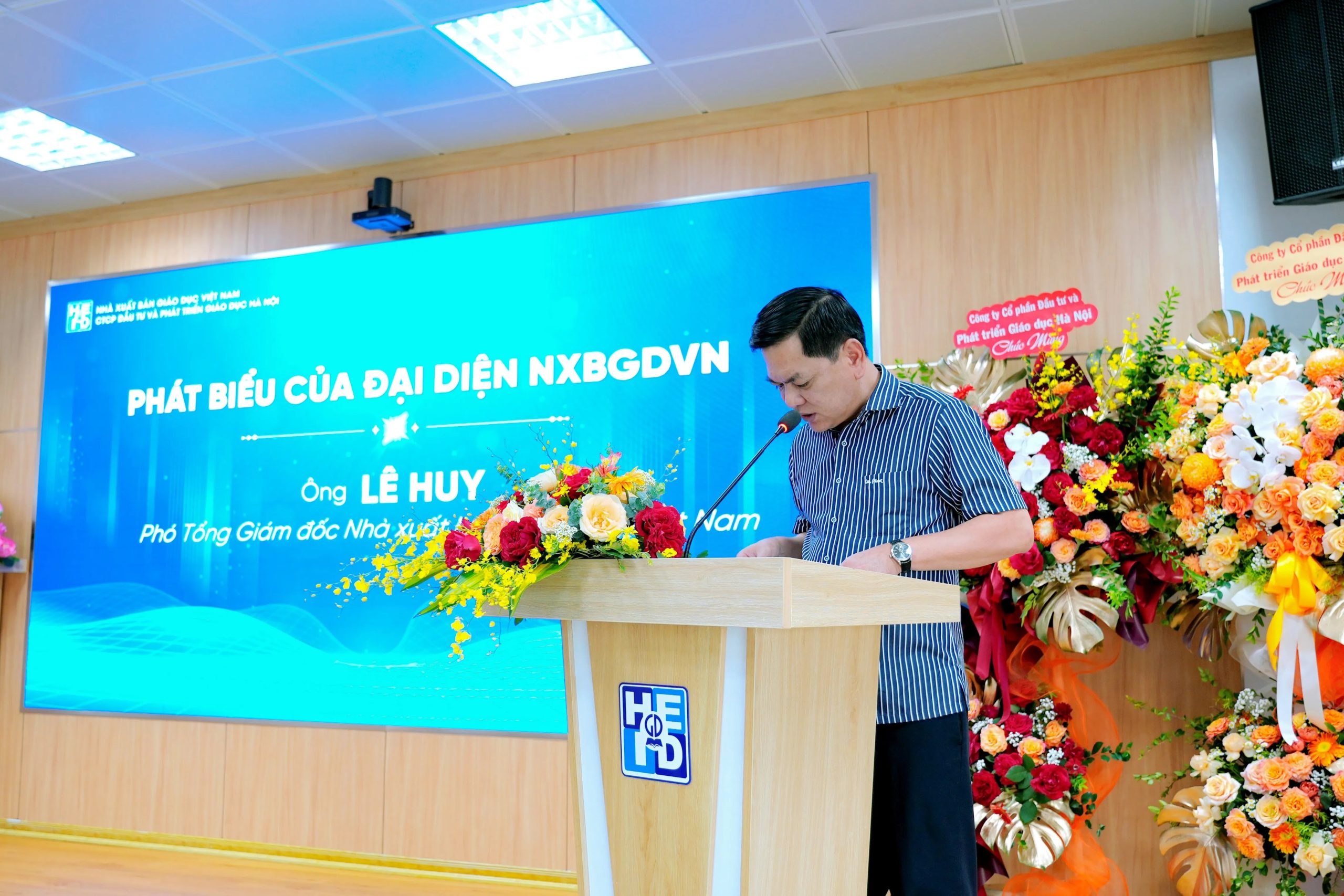 Ông Lê Huy – Phó TGĐ NXBGDVN phát biểu tại chương trình.
