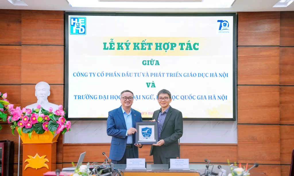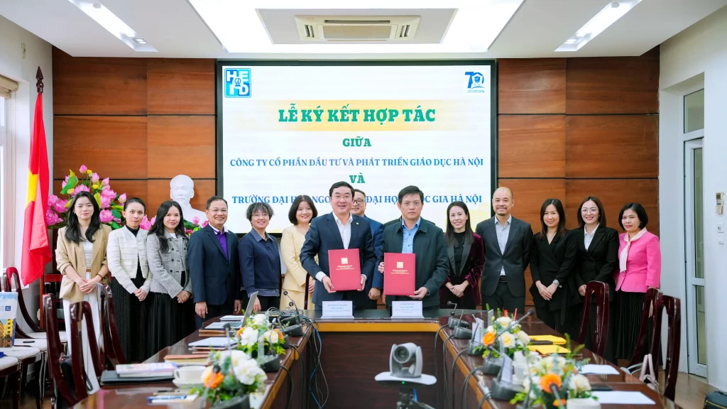 Nhằm phát huy thế mạnh của mỗi đơn vị và cùng nhau kiến tạo những giá trị mới cho lĩnh vực giáo dục, vào ngày 05/11/2025, Công ty Cổ phần Đầu tư và Phát triển Giáo dục Hà Nội (HEID) – đơn vị thành viên của Nhà xuất bản Giáo dục Việt Nam, đã cùng Trường Đại học Ngoại ngữ – Đại học Quốc gia Hà Nội (ULIS) tổ chức Lễ ký kết hợp tác (MOU). Sự kiện đánh dấu bước ngoặt chiến lược trong việc đồng hành, phát triển và chuyển đổi số giáo dục ngoại ngữ quốc gia.
