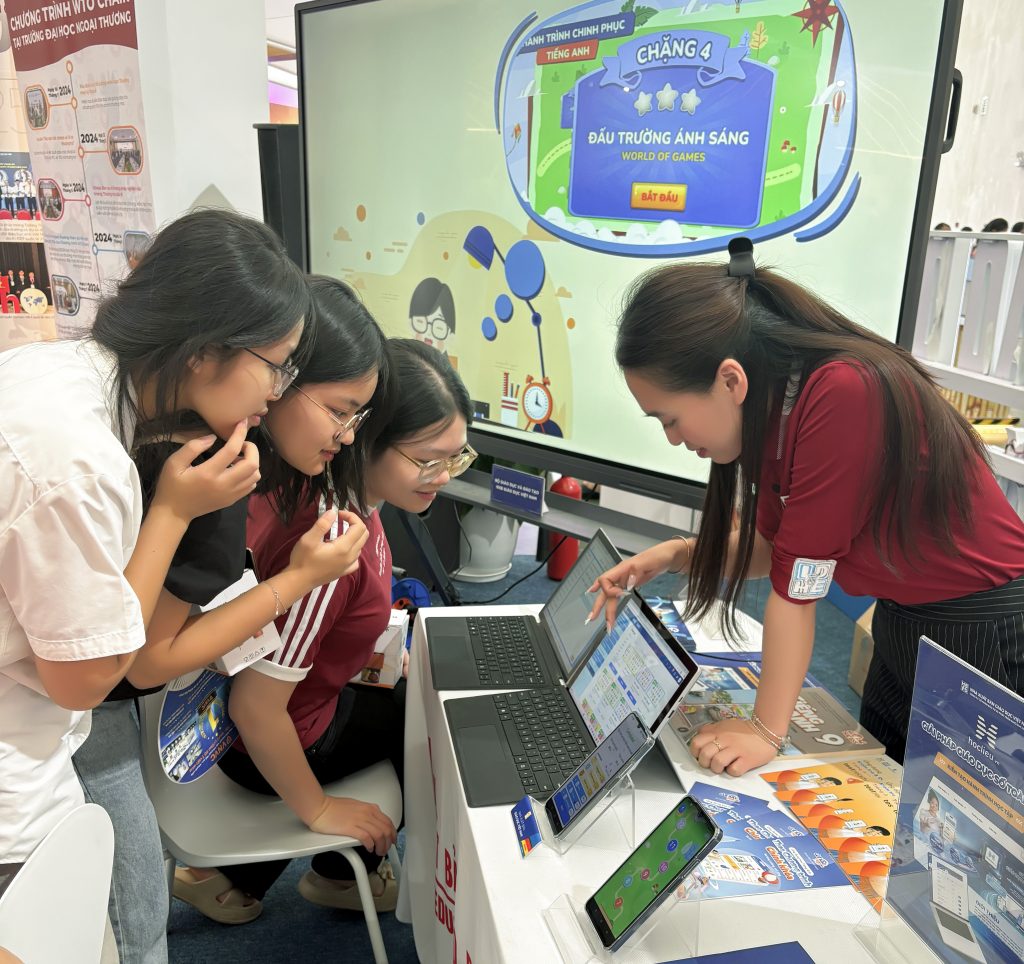 Gian hàng của HEID trở thành điểm dừng chân được nhiều thầy cô, học sinh và phụ huynh ghé thăm. Không khí tại đây lúc nào cũng rộn ràng, vừa tò mò khám phá, vừa háo hức trải nghiệm những nền tảng, ứng dụng giảng dạy – học tập hiện đại.