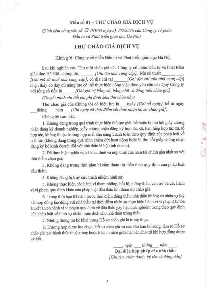 CÔNG TY CỔ PHẦN ĐẦU TƯ VÀ PHÁT TRIỂN GIÁO DỤC HÀ NỘI